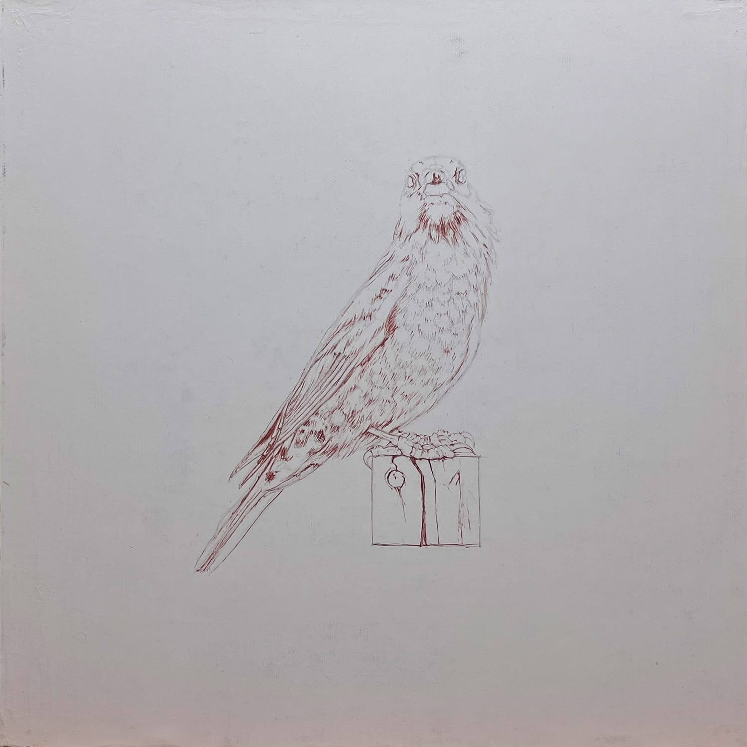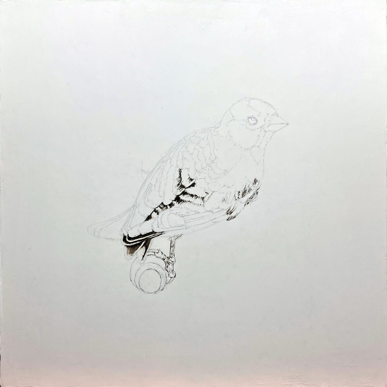 I set up a small perch inside, on an old stick projecting from the plaster wall. Pulled out a new canvas-covered panel and my silverpoint and began drawing them. Being small, energetic and nervous birds made drawing a challenge, and silverpoint is not erasable. To say that it wasn't the most productive session would be an understatement.