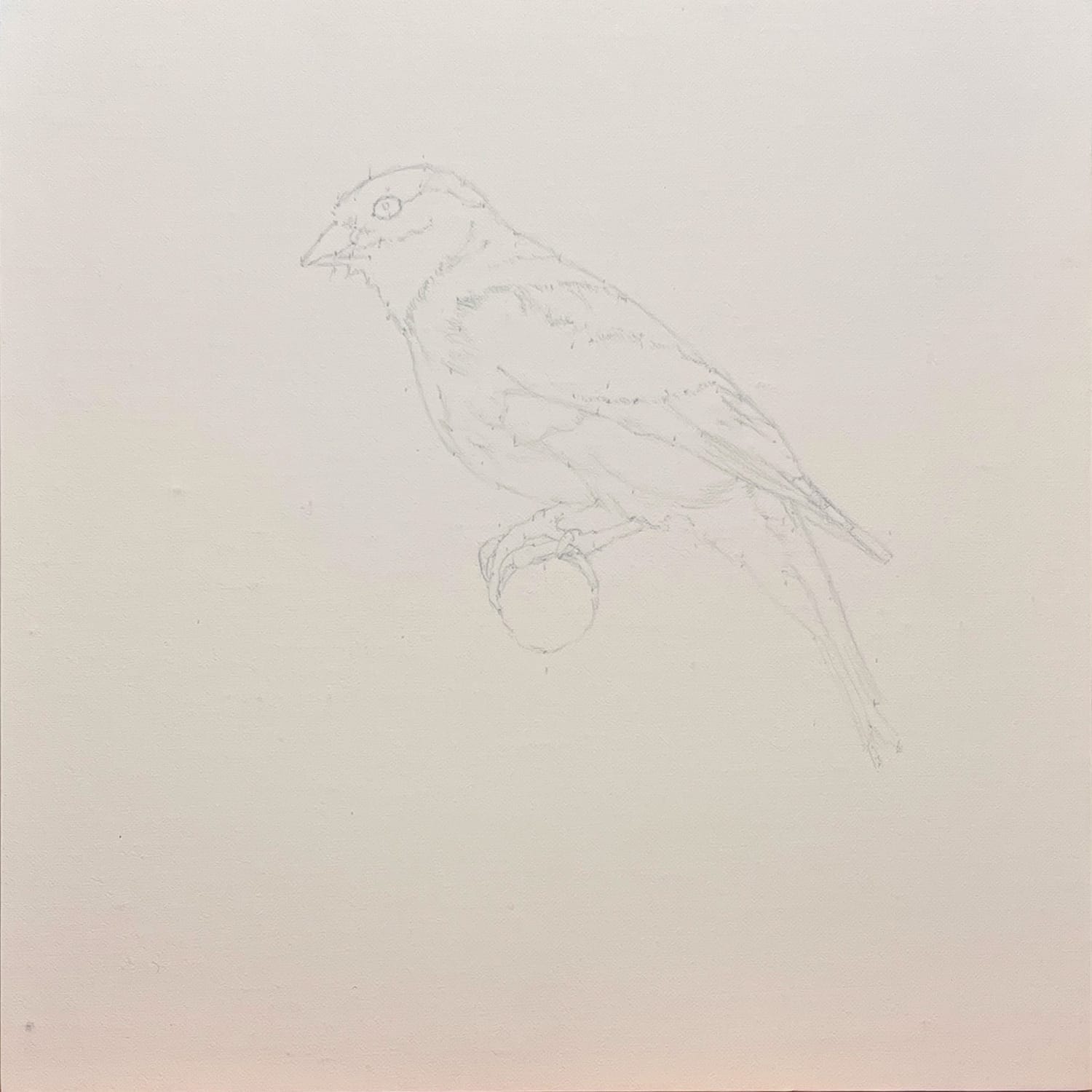 The initial sketch of my visitor, Élian, an American Goldfinch